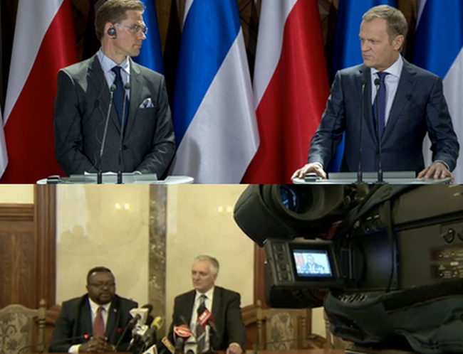 Donald Tusk korzysta z „pulpitu premiera” i w naturalny sposób pozycjonuje się jako jeden z przywódców Europy. To zresztą widać, że Tusk bardzo lubi pokazywać się w otoczeniu brukselsko-międzynarodowym, by na tym tle konkurenci wyglądali jak „lokalni politycy”, co na „offie” mówi dziś jeden z polityków PO Michałowi Szułdrzyńskiemu w Rzeczpospolitej. Ilustracją tego była na przykład wczorajsza odpowiedź premiera na list Gowina, podczas konferencji z premierem Finlandii, gdzie wszystkie media pokazały Tuska wśród europejskich flag w zestawieniu z Gowinem na tle marmurowej ściany. Podobnie jest z utrzymywaną przy życiu plotką, że Tusk mógłby zastąpić Jose Manuela Barroso na stanowisku szefa Komisji Europejskiej, która też służy pokazaniu, że jest on w PO nie tylko liderem, ale też jednym z europejskich przywódców.