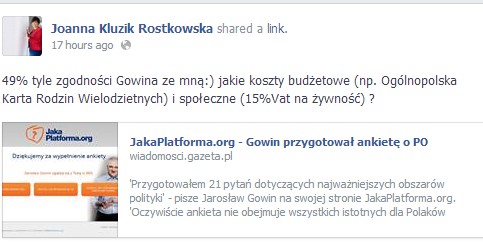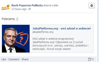 Co ciekawe, link do ankiety Gowina pojawił się także na oficjalnym profilu Ruchu Palikota (ponad 80 tysięcy lajków).