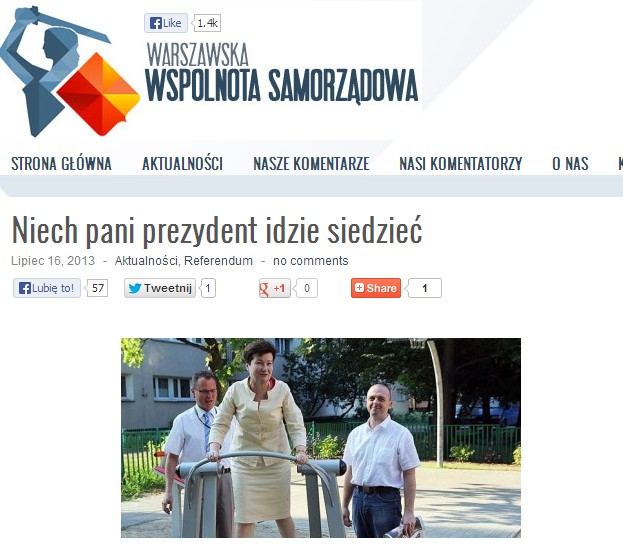 Jak się okazuje, WWS postawiło na "sprzedawanie" swojej linii argumentacji przede wszystkim za pomocą komentarzy i newsów publikowanych na głównej stronie całego przedsięwzięcia. Np. ostatnim wpisem w sekcji "Aktualności" na WWS jest tekst zatytułowany "Niech pani prezydent idzie siedzieć" a dotyczący plenerowych siłowni. Tekst jest zilustrowany oczywiście zdjęciem Hanny Gronkiewicz-Waltz testującej jedną z nich. Jak czytamy: "Hannie Gronkiewicz-Waltz udało się już uzdrowić chore opłaty za wywóz śmieci, wysłać do mieszkańców głosicieli dobrej nowiny (urzędnicy będą chodzić po domach i opowiedzą o obniżkach podatku), wstrzymać metro i ruszyć rowery, a teraz postanowiła dokonać cudownego rozmnożenia plenerowych siłowni. (...) Na początek warto byłoby zaprowadzić panią prezydent na plac zabaw dla dzieci. Gdyby siadła tam na huśtawce, być może najmłodsi w Warszawie wkrótce mogliby bezpieczenie bawić się na otwartych przestrzeniach, a nie w samotności na grodzonych osiedlach. Żeby nie zmieniać zbyt szybko otoczenia, pani prezydent powinna z placu zabaw udać się do żłobka".