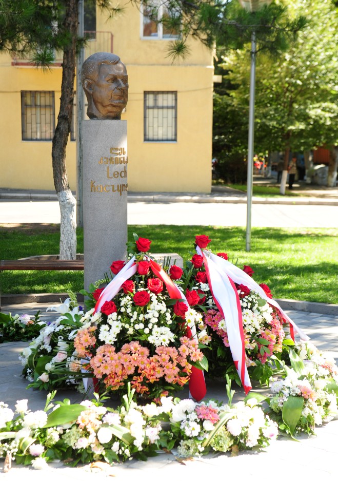 Kaczyński i prezydent Gruzji złożyli także kwiaty pod pomnikiem Lecha Kaczyńskiego.