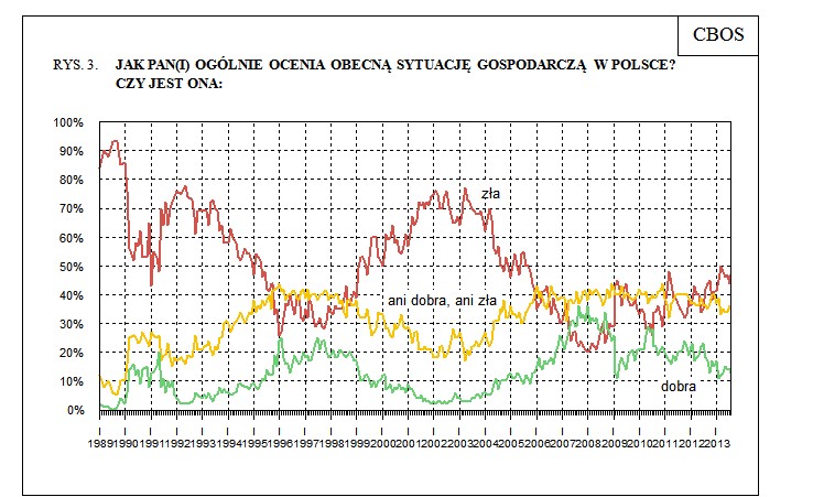 W sierpniowym badaniu CBOS, dotyczącym nastojów społecznych utrzymuje się trend stopniowej poprawy ocen rozwoju sytuacji w kraju. Przybyło jednak osób, które spodziewają się że w najbliższym czasie pogorszy się kondycja ich gospodarstw domowych. Coraz więcej ankietowanych jest także rozczarowanych sytuacją gospodarczą w Polsce.