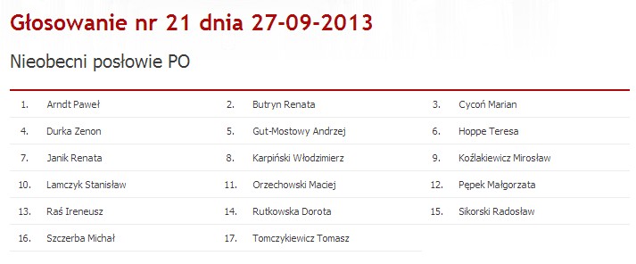 Nie głosowało 17 posłów Platformy