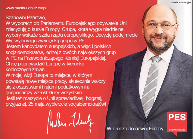 W czwartek w "Super Expressie" ukaże się ogłoszenie wykupione przez SLD z apelem Leszka Millera o udział w wyborach i głosowania na Sojusz. Ogłoszenie zawiera także hashtag #KursNaZmianę, bardzo konsekwentnie stosowany przez partię Millera od wielu miesięcy. Równolegle (i niezależnie od SLD) PES wykupiła ogłoszenia w jutrzejszym "Fakcie" oraz piątkowej "Gazecie Wyborczej" i "Metrze" z przekazem Martina Schulza.