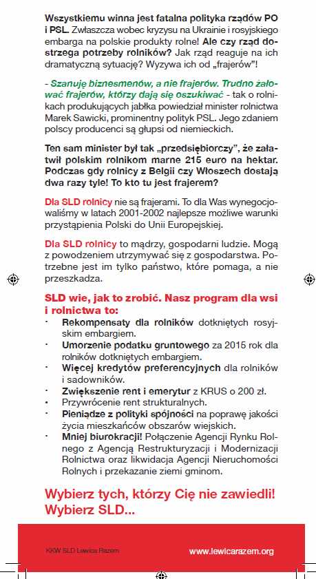 -- SLD UDERZA W LUDOWCÓW ULOTKĄ. JUTRO START AKCJI “NIE JESTEŚ FRAJEREM, NIE GŁOSUJ NA PSL”. https://300polityka.pl/news/2014/10/24/sld-uderza-w-ludowcow-tak-wyglada-ulotka-z-haslem-nie-jestes-frajerem-nie-glosuj-na-psl/