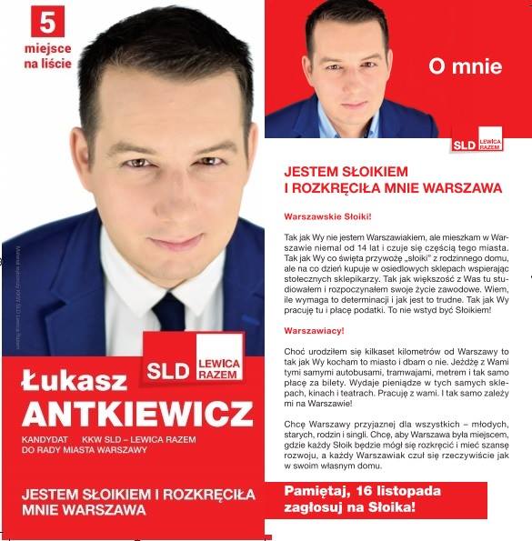 Jej kolega z CM SLD Łukasz Antkiewicz swoją kampanię oparł o hasło "słoik", powszechnie kojarzone w Warszawie.