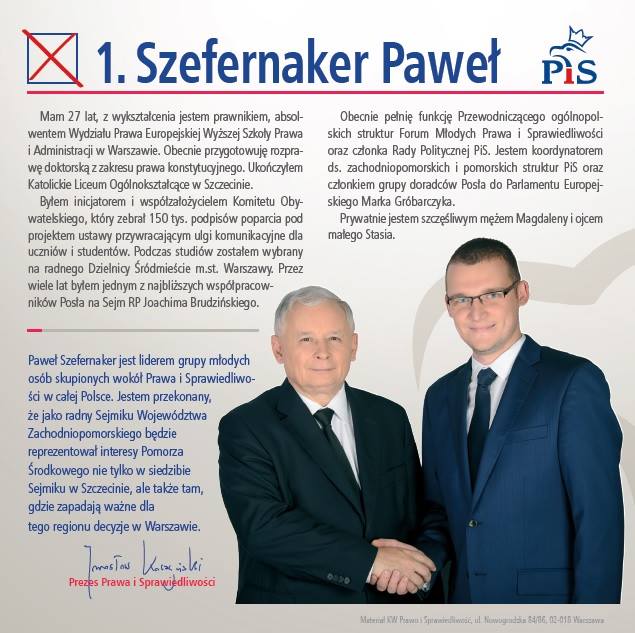 Kilkaset kilometrów dalej na zachód, w woj.zachodniopomorskim swoją kampanię do sejmiku prowadzi Paweł Szefernaker, szef młodzieżówki PiS a także koordynator kilku istotnych dla partii projektów w ostatnich miesiącach.