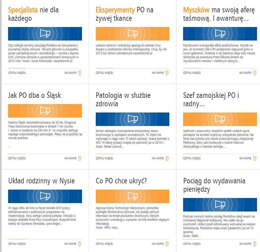 Serwis ma być też wykorzystywany w kolejnych kampaniach PiS. Można oczywiście zgłaszać własne propozycje bulwersujących historii związanych z Platformą, a każdy wpis można łatwo opublikować w mediach społecznościowych.