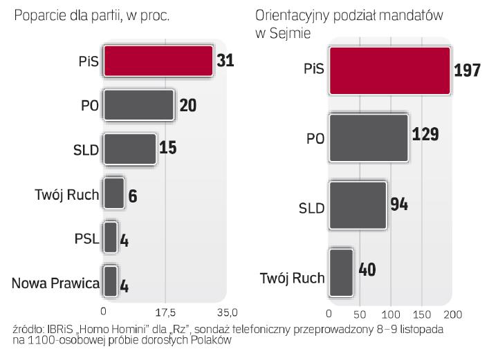 -- HH DLA RZ: PiS 31%, PO 20%, SLD 15%, Twój Ruch 6%, PSL 4%, Nowa Prawica 4%