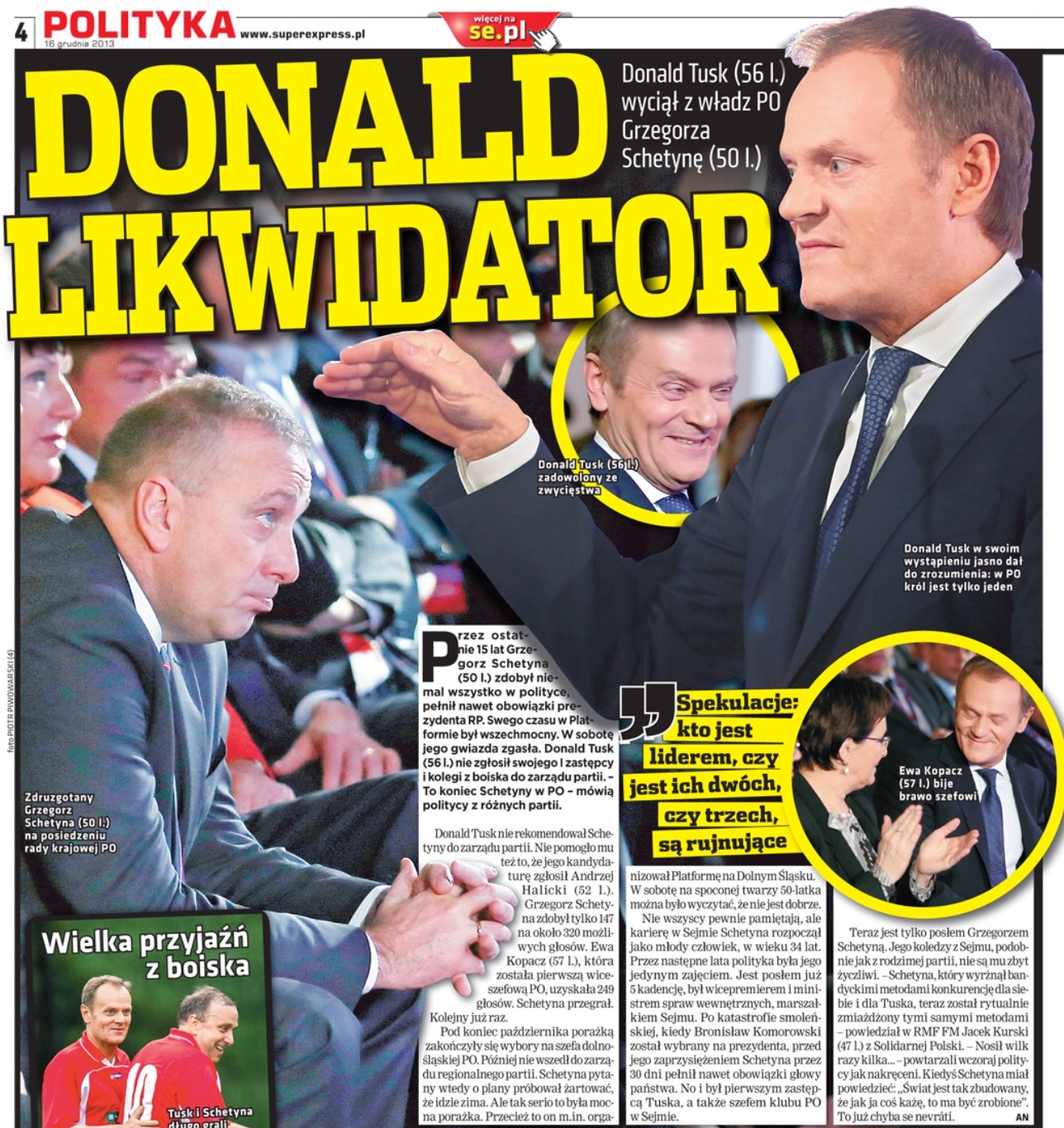 -- TUSK ROZPYCHA SIĘ NA LEWO I „UKATRUPIA” SCHETYNĘ- tytuł tekstu Joanny Miziołek w Polsce the Times.